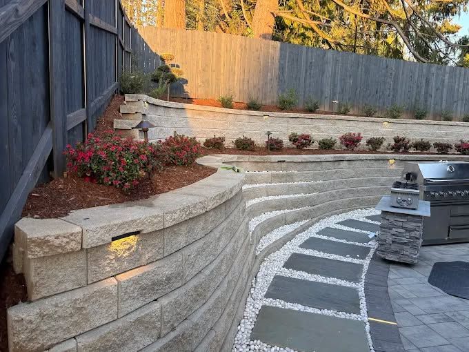 From patios and walkways to retaining walls, fire pits, or decorative rock features — we build hardscapes that complement your home and make outdoor living practical and beautiful. Hardscaping not only elevates your yard’s look but also improves drainage and reduces erosion — especially helpful in our rainy seasons.